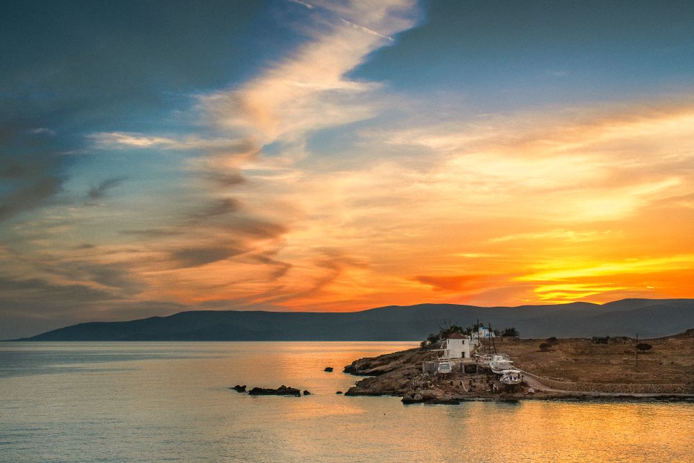 La nuit, Kéros ressemble à la silhouette d’une femme allongée. À la lumière du jour, l’île révèle son intérêt archéologique.